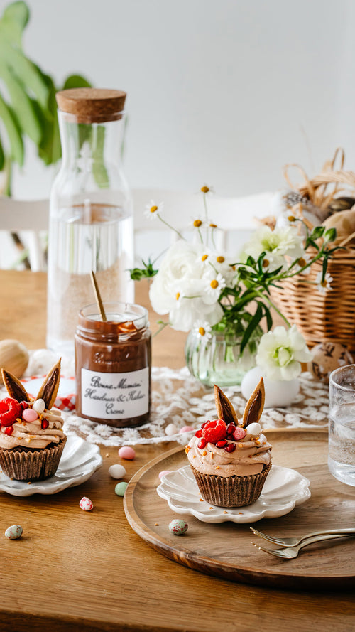 - 3 TL Bonne Maman Haselnuss- & Kakao-Creme unterrühren und nochmals kurz aufschlagen. Bis zur Verwendung im Kühlschrank aufbewahren.