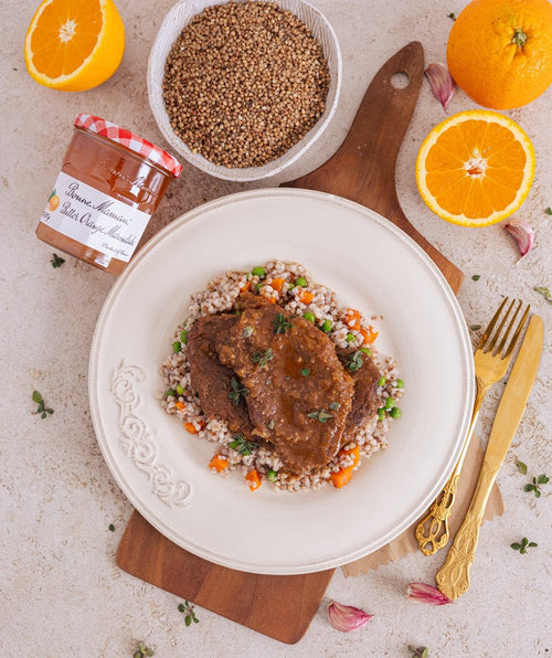 Rindersteaks in Natursauce mit Orangenmarmelade